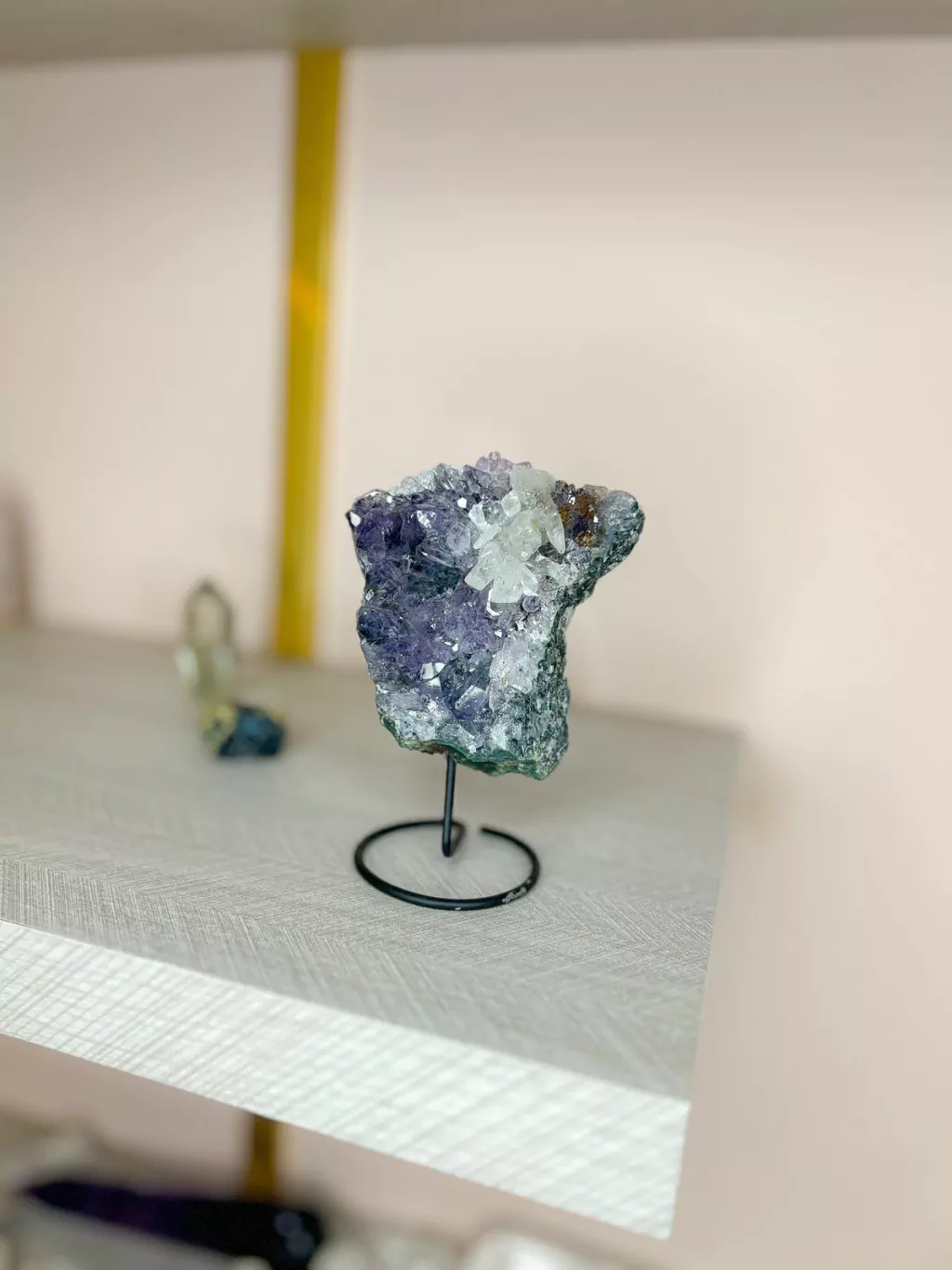 Essa drusa de ametista na base é a peça perfeita para quem busca um toque de elegância e energia positiva no ambiente! Com suas maravilhosas tonalidades roxas e o brilho cativante das suas cristais, essa drusa não só decora, mas também traz proteção e tranquilidade. A ametista é famosa por suas propriedades de purificação e elevação espiritual, ideal para meditações e momentos de reflexão. Coloque-a em destaque na sua sala ou no seu espaço de trabalho e sinta a serenidade que ela emana todos os dias!