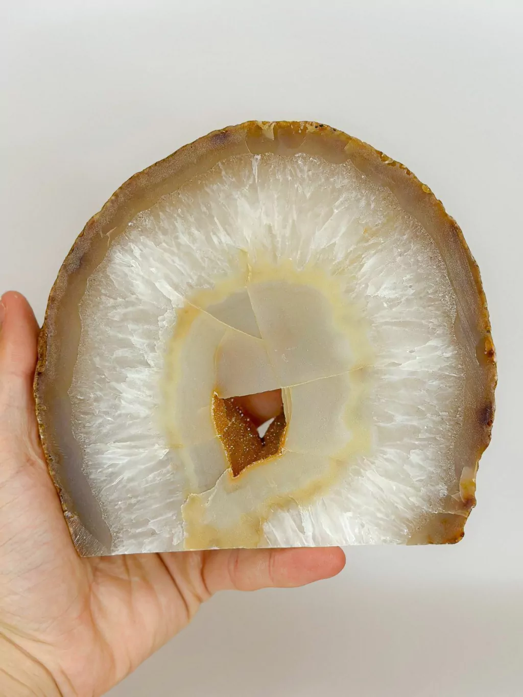 As nuances de cores e a beleza interna de cada geodo são um convite para a introspecção e o fortalecimento de laços. Deixe que a energia positiva da ágata flua ao seu redor e transforme seu lar em um refúgio de amor e proteção.