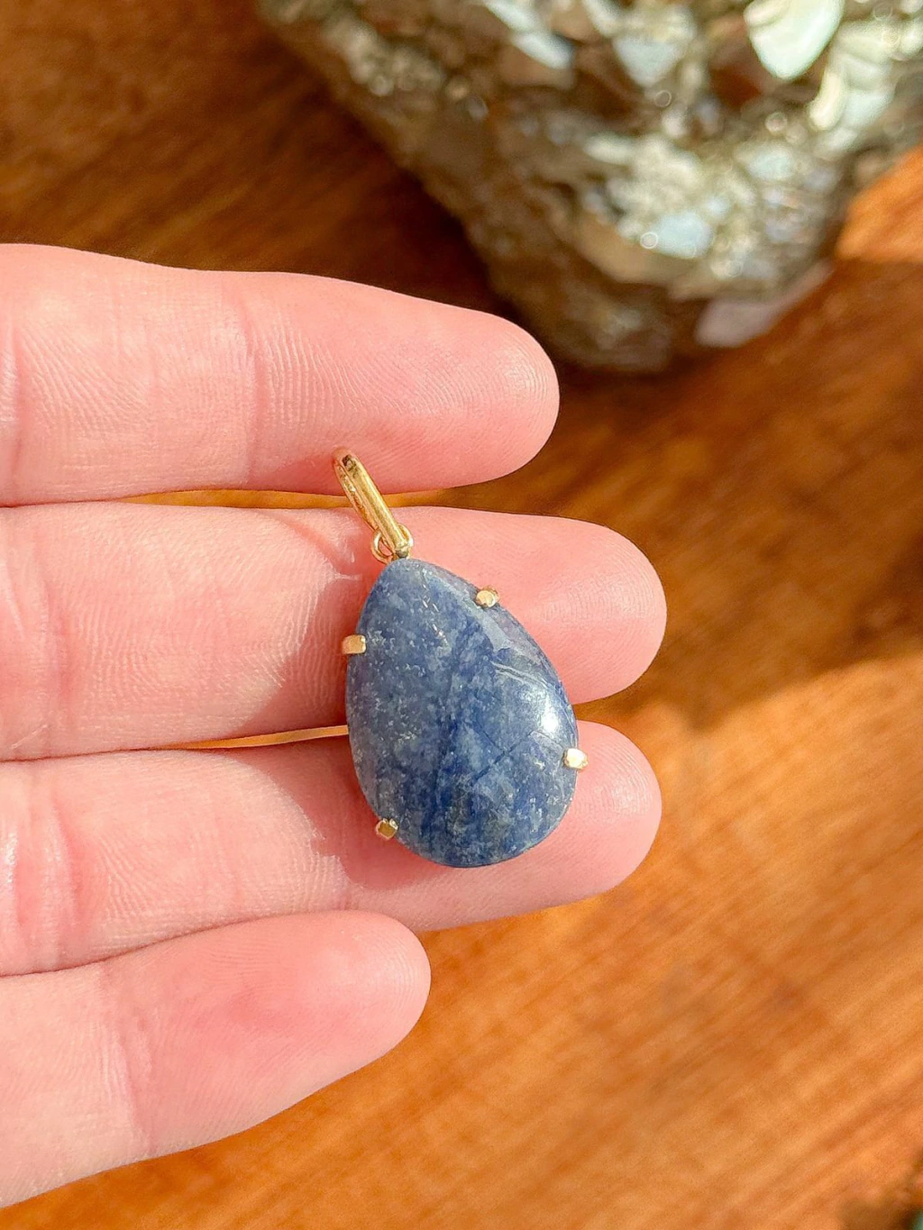 1 pingente de Quartzo Azul – ideal para acalmar a mente e facilitar a comunicação em momentos de tensão;