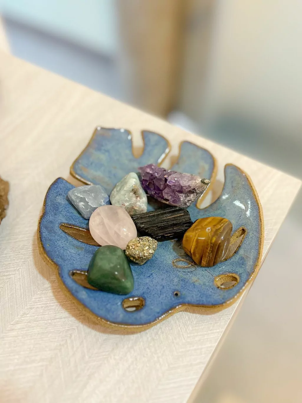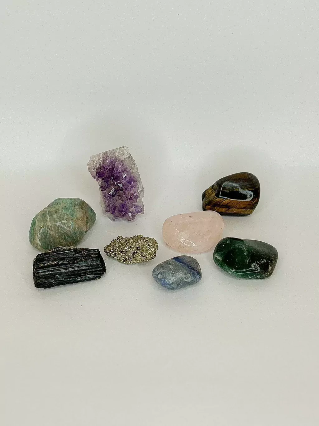 Transforme seu espaço com o Kit Hall de Entrada ou Escritório. Se você busca harmonizar e energizar seu ambiente, este kit é a escolha ideal, composto por uma seleção de pedras poderosas que trazem beleza e propriedades energéticas. O kit inclui drusa de ametista, olho de tigre, turmalina negra, quartzo azul, amazonita, pirita, quartzo rosa e quartzo verde. Cada pedra foi escolhida para oferecer benefícios únicos: a ametista promove a paz e a tranquilidade, o olho de tigre protege e traz clareza mental, a turmalina negra é eficaz contra energias negativas, o quartzo azul estimula a comunicação e a criatividade, a amazonita equilibra as emoções, a pirita atrai prosperidade e abundância, o quartzo rosa é o cristal do amor e da harmonia, e o quartzo verde favorece a cura emocional e física. Coloque este kit no seu hall de entrada para receber boas energias ou no escritório para aumentar a concentração e produtividade. Com essas pedras incríveis, você transformará seu espaço em um verdadeiro santuário de boas vibrações.