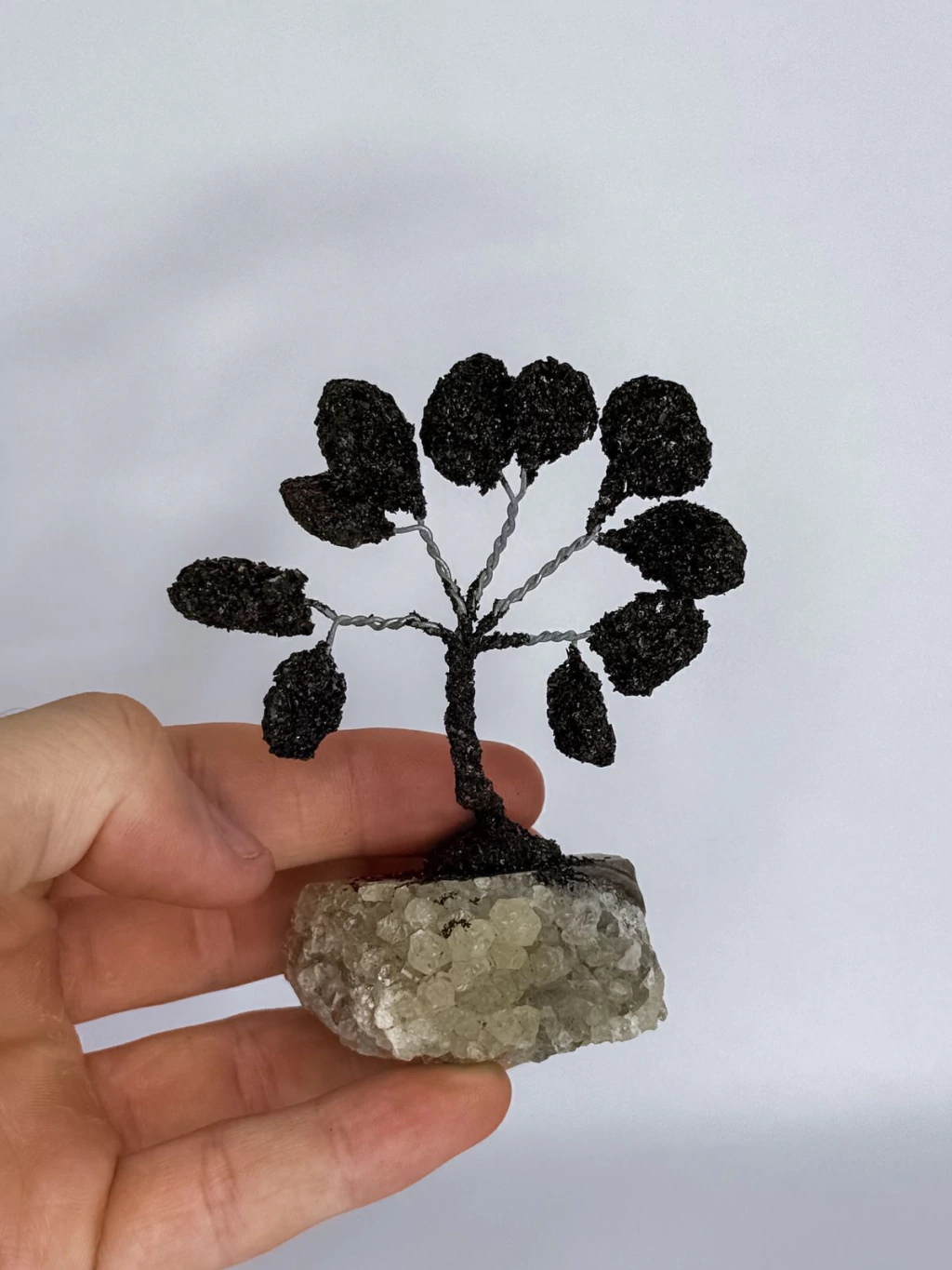 O geodo de ágata atua como um escudo energético, trazendo estabilidade e segurança. O bonsai com folhas de turmalina afasta energias negativas e estimula uma atmosfera de produtividade e clareza. Já o olho de tigre, com sua energia firme e protetora, fortalece a autoconfiança e ajuda a manter o foco nas metas. Juntos, eles criam um campo de proteção e motivação, ideal para quem busca um ambiente de trabalho leve, seguro e inspirador.