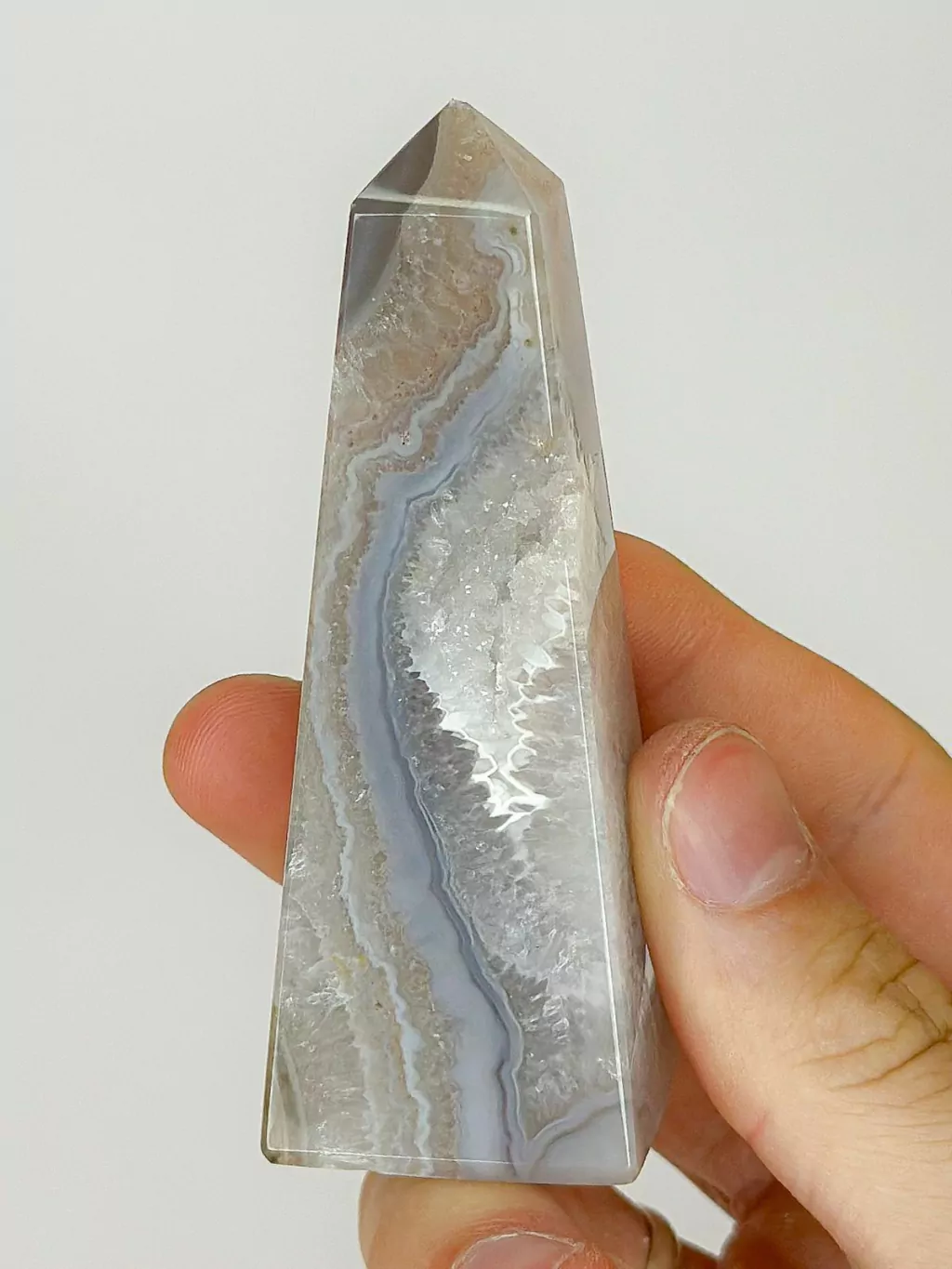 Estas majestosas colunas de ágata são fontes de uma energia ancestral, pulsante e vital. Estrategicamente posicionadas, esses obeliscos canalizam a energia da Terra, irradiando estabilidade e serenidade ao seu redor. Ao se aproximar, é como se pudéssemos sentir a própria pulsação do planeta, uma conexão profunda que nos renova e nos revigora. Esses monumentos naturais nos convidam a tocar, a sentir, a experimentar a força que emana de suas camadas multicoloridas, nos lembrando da infinita energia que permeia o universo e da nossa conexão íntima com ela.