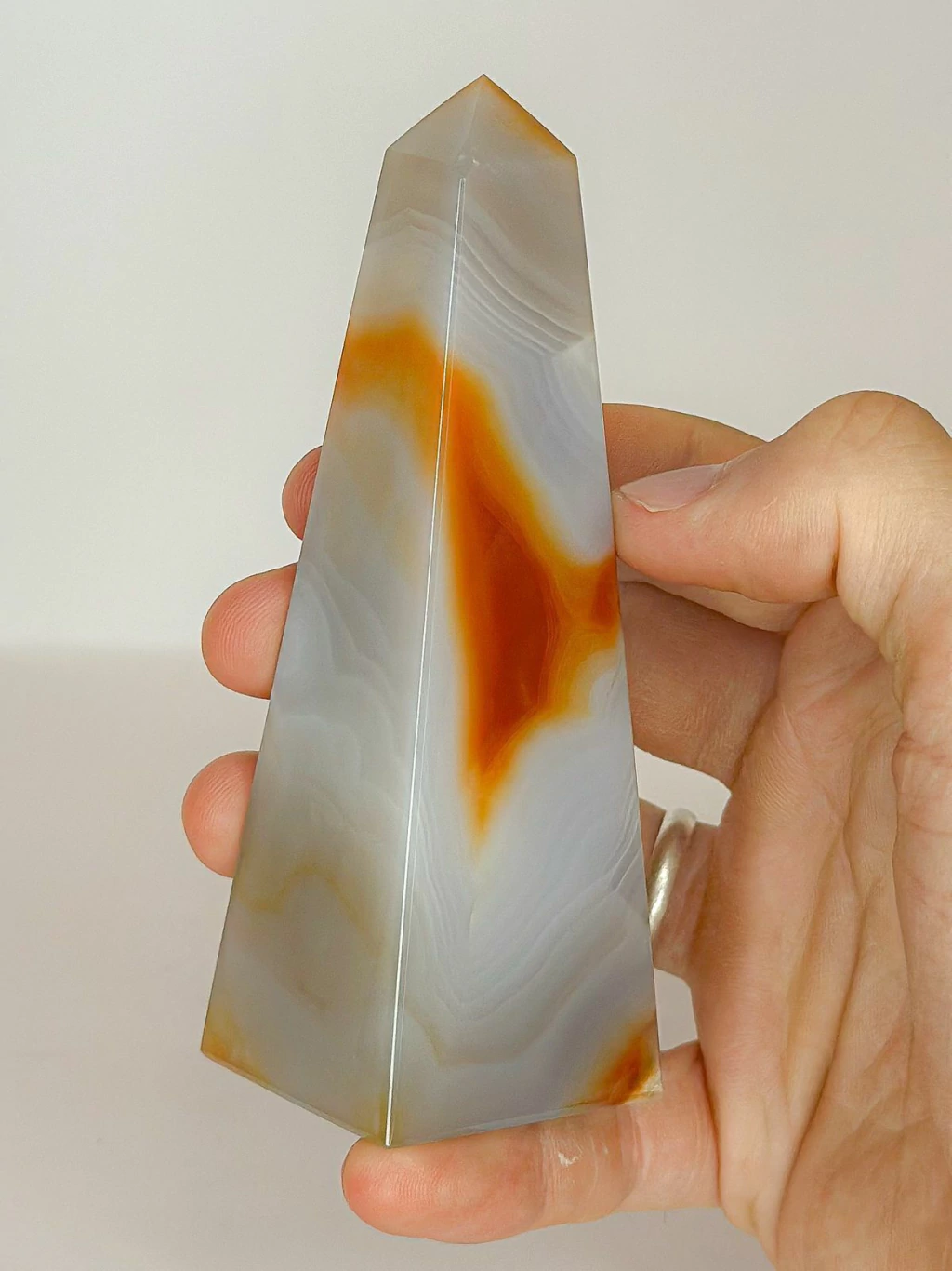 Este Obelisco de Ágata Tingida é mais que uma peça decorativa; ele é um verdadeiro símbolo de força e proteção. A ágata, com suas cores vibrantes, emana vitalidade e promove um ambiente de equilíbrio e amizade.