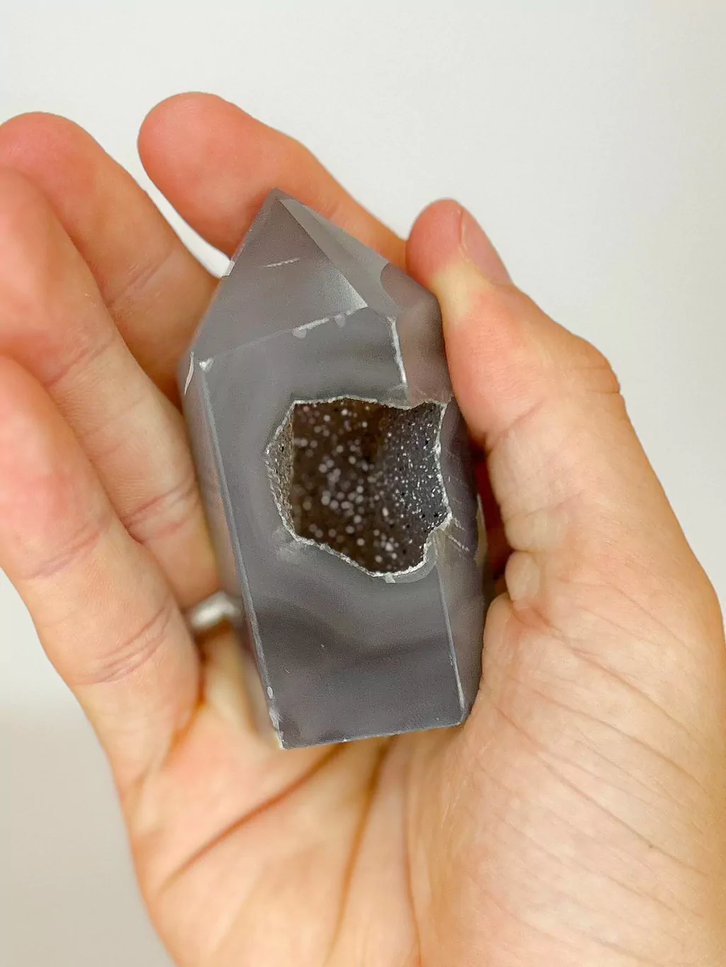 Essa ponta de ágata em drusa é uma verdadeira joia da natureza que vai transformar seu espaço! Com suas cores exuberantes e a drusa que revela um brilho fascinante, essa peça não só embeleza o ambiente, mas também traz uma energia de proteção e renovação. A ágata é reconhecida por suas propriedades estabilizadoras, ideal para quem deseja equilíbrio e harmonia na vida. Coloque-a em destaque na sua sala ou no seu altar e deixe a energia positiva fluir ao seu redor!