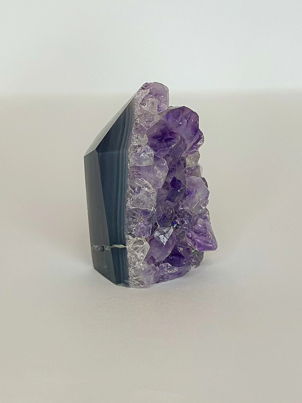 A ametista é famosa por suas propriedades calmantes, enquanto a ágata oferece estabilidade emocional. Juntas, elas criam um ambiente propício para a meditação e introspecção.